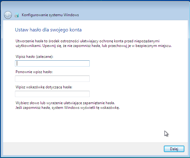 Tworzymy hasło do swojego konta. Hasło zapamiętajmy w przeciwnwnym razie nie zalogujemy się do systemu